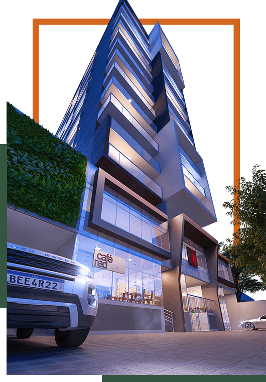 ESTRUTURA: lajes planas protendidas, vigas e pilares. Fundações apoiadas em rocha e parte em solo